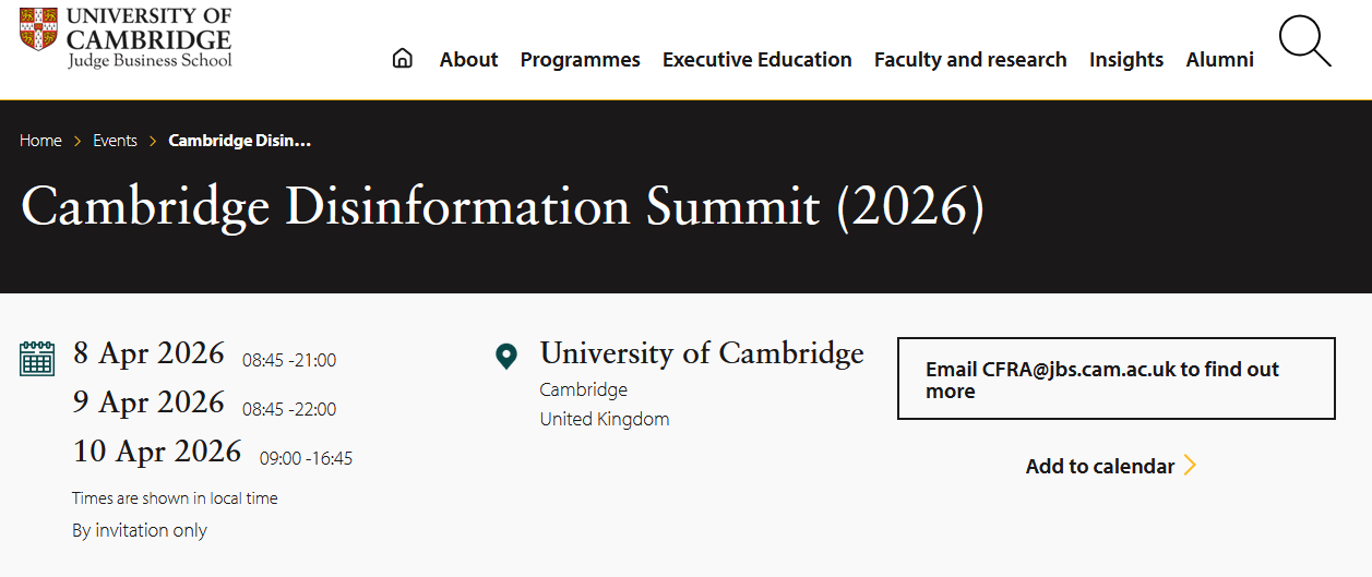 Cambridge Disinformation Summit (2026) (University of Cambridge, Cambridge, UK)